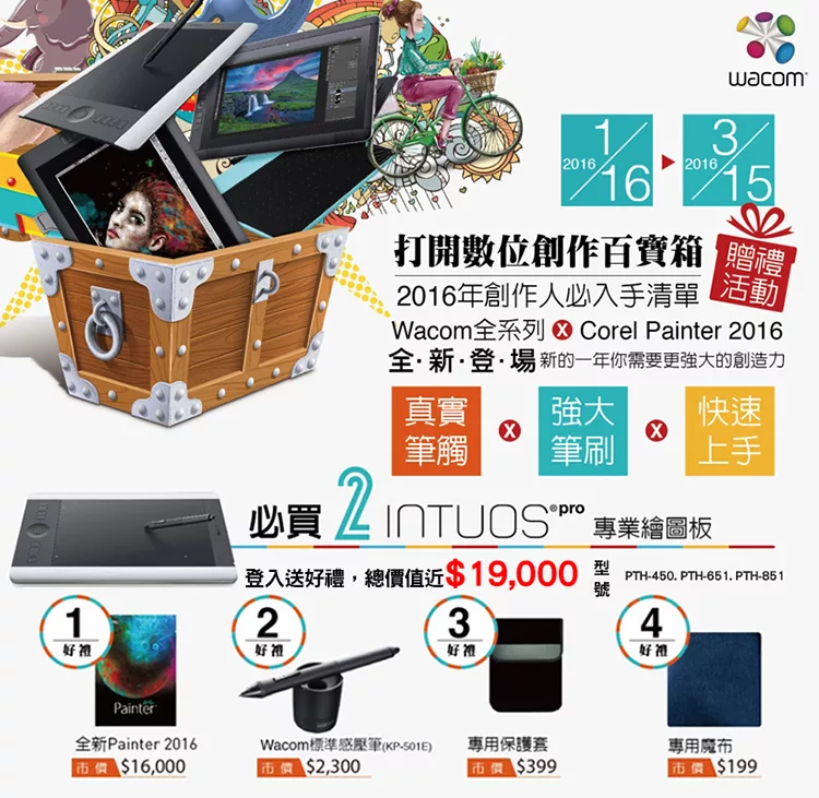 【專業黃金組合】(vol.8) INTUOS Pro- Large (8x13) ★ PTH-851 + Painter2015(專案版) 優惠賣家