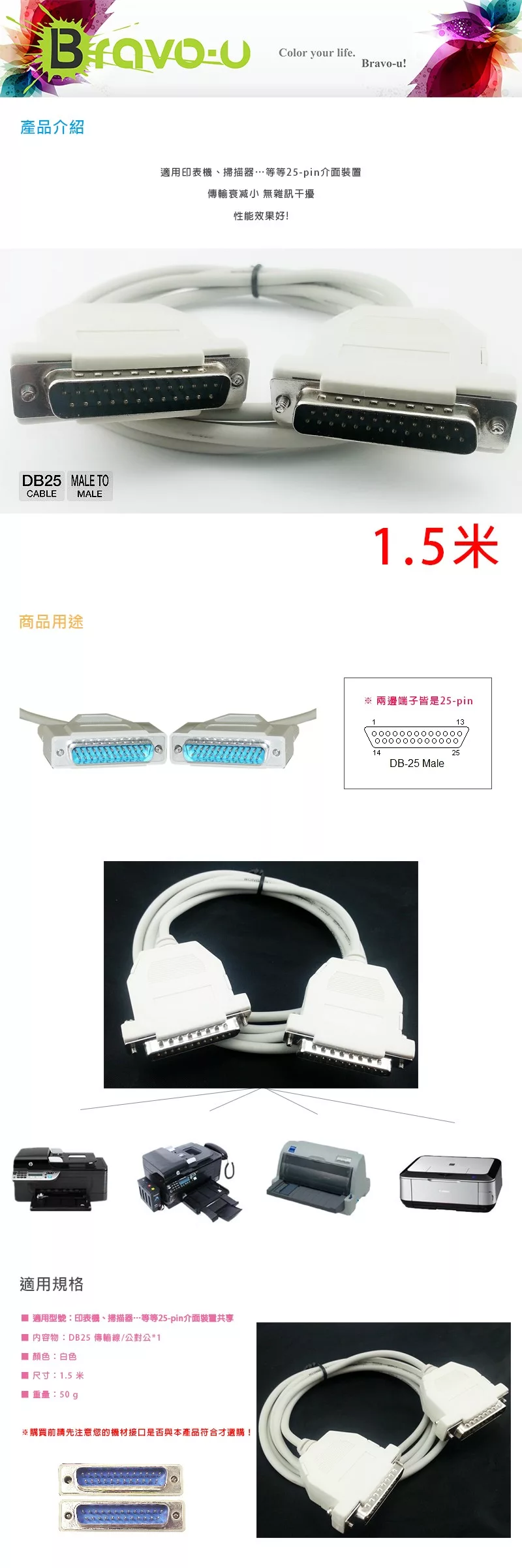 Bravo-u DB25-DB25 標準印表機連接線-公對公(1米5) ptt討論