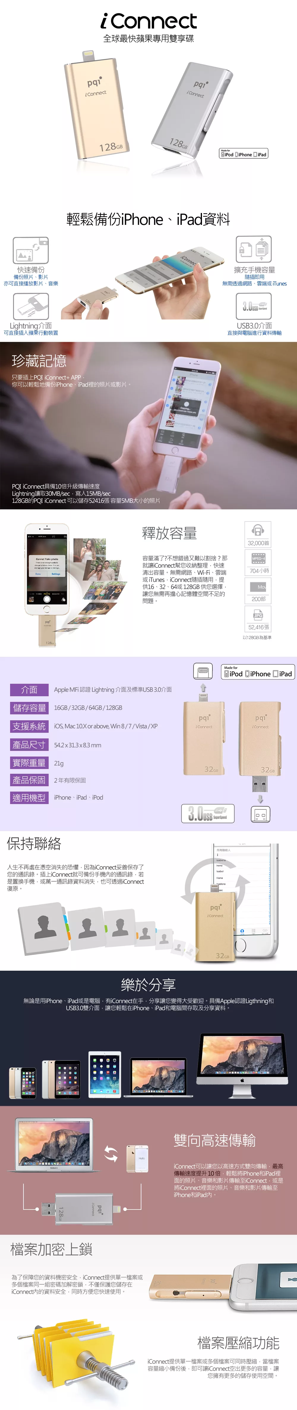 PQI iConnect 蘋果專用超速雙享碟 16GB USB 3.0 蘋果MFi認證通過-金色 ptt使用評比