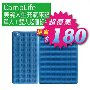 單人+雙人超值組合【博客來2017周年慶】現省180【CampLife】美麗人生充氣床墊.自由拼接.適用於各款帳蓬![]() | TreeWalker 雙人雙面鋁箔睡墊(200x95cm)-2入![]() |